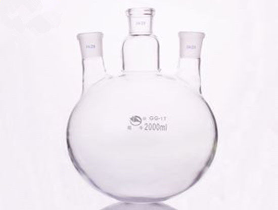 是一個短頸、厚口、園底燒瓶,在瓶體肩部的周圍焊接有三口(三頸),四口(四頸)的燒瓶。瓶頸的角度分為直頸與斜頸二種。多口,主要為配合復雜的實驗操作,可同時裝配更多的配合儀器。直口:因各種配件都是垂直裝置,瓶中心空脈大,便于攪拌溶液,不易損壞其它配件儀器而設計。但它的缺點是由于直口,加料時僅能加到瓶底的一邊,使加料的均勻性受到影響;由于直口瓶底中心空隙大,但在瓶底表面空隔就小,特別小規格使瓶體肩部瓶頸密集,按裝圖難,有時無法按裝。斜口:由于角度為斜角(有10* 斜角或25。斜角),加料時可以直接均勻的加到瓶底的中心,瓶體表面各種儀器配件裝配亦成斜角,由于瓶的肩部空隙大,口頸間距大,按裝容易,特別小規格更明顯;但瓶底的中心空蹤位置少,攪拌時發生困難,容易損壞其它配件儀器。因此這兩種設計均有優點與缺點。